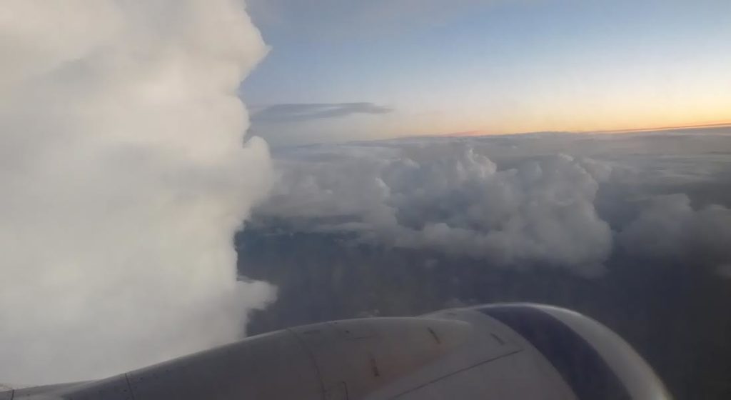 We had lightning off of the port wing as we flew through thunder clouds. The pilot was calm as he flew around the piled up clouds as if he was avoiding a puddle in a road, it made for great viewing.